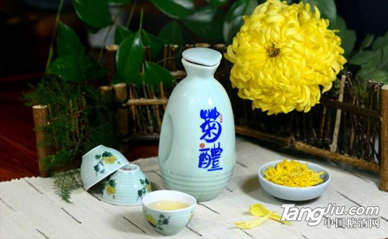除饮菊花酒外,有的还饮用茱萸酒、茱菊酒、黄花酒、薏苡酒、桑落酒、桂酒等酒品。历史上酿制菊花酒的方法不尽相同。晋代是“采菊花茎叶,杂秫米酿酒,至次年九月始熟,用之”,明代是用“甘菊花煎汁,同曲、米酿酒。或加地黄、当归、枸杞诸药亦佳”。清代则是用白酒浸渍药材,而后采用蒸馏提取的方法酿制。因此,从清代开始,所酿制的菊花酒,就称之为“菊花白酒”。