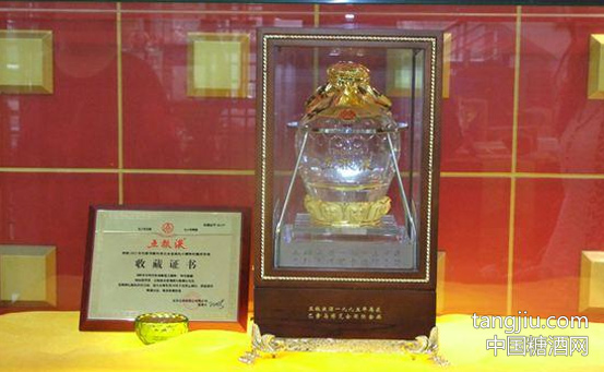 2005年,五粮液首获巴拿马万国博览会金奖90周年,为纪念这一盛事,五粮液特别推出此款五粮液90年金奖纪念酒。纪念酒瓶体采用经典酒坛造型,底部镶嵌莲花宝座,盖头、瓶底全部采用24K纯金制作,其中“0009”号纪念酒曾拍卖出88万元的天价。