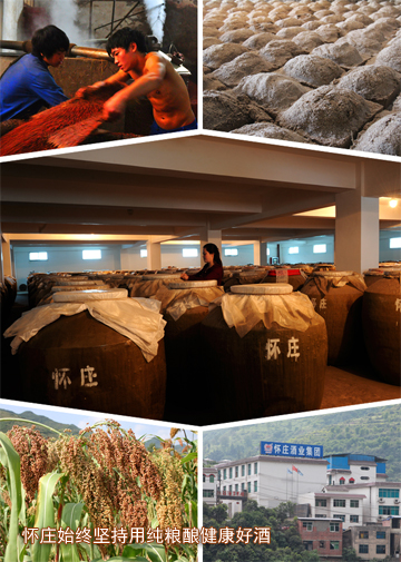 怀庄所用酿酒工艺与国酒茅台几无二致。制曲、制酒、贮存、勾兑、检验、包装是怀庄酿酒的六大步骤。端午踩曲,重阳投料,怀庄酿酒为一年一个生产周期,其间九次蒸煮,八次发酵,七次取酒,经分型贮放,勾兑贮放,五年后包装出厂。