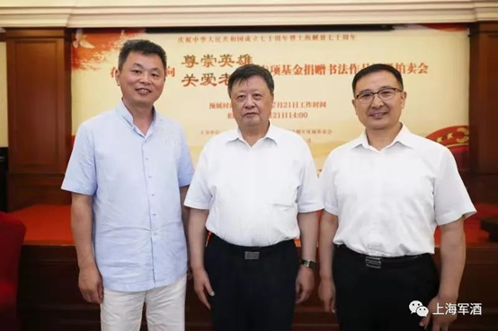 韩宏伟董事长、原总政副主任童世平上将、上海市退役军人事务局黄冲局长共同出席“尊崇英雄 关爱老兵”活动(从左至右 )