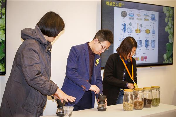 百威英博亚太北区总裁吉祥带领嘉宾投料,开启武汉精酿工厂第一酿