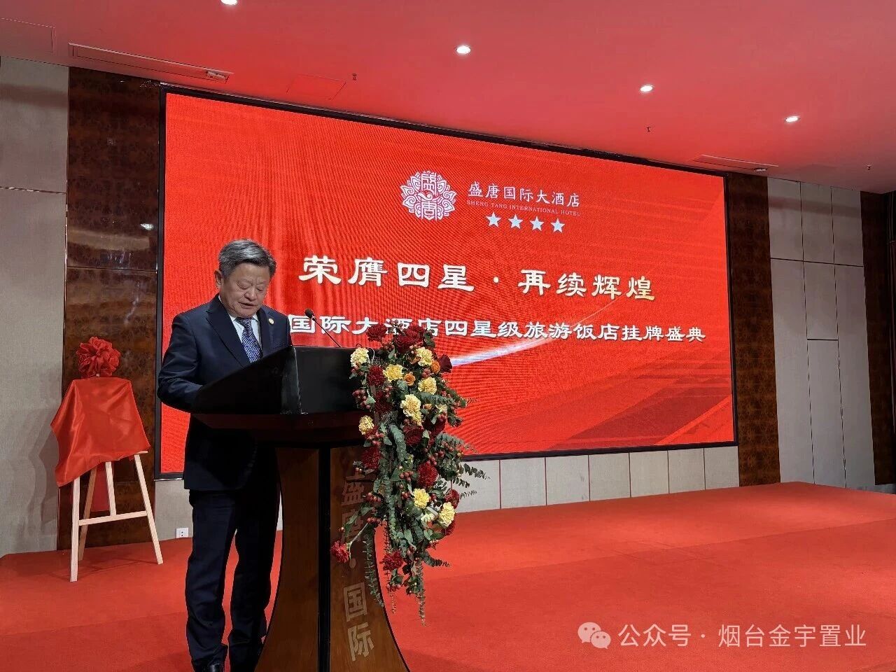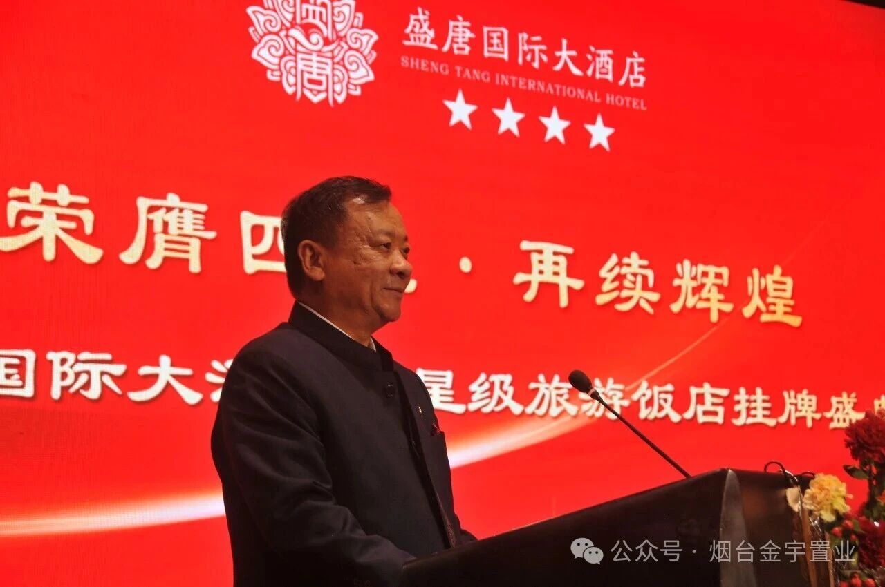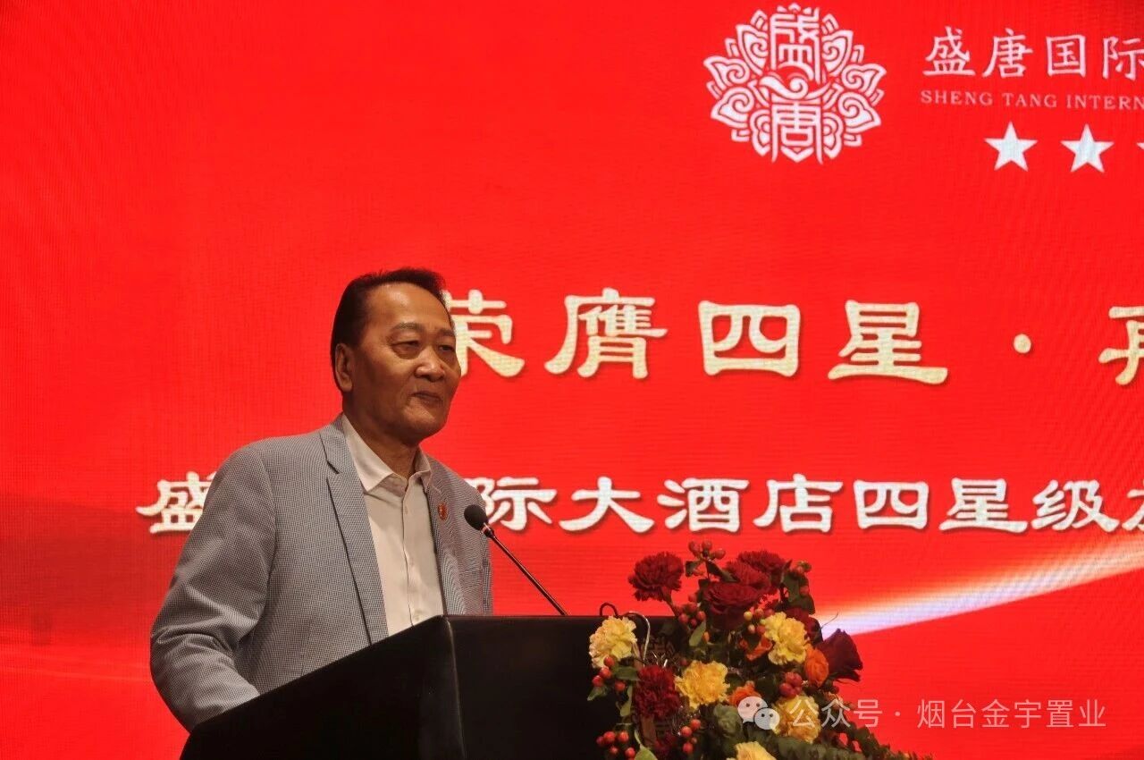 山东省旅游饭店协会副会长、烟台市旅游饭店协会会长周家伟上台,郑重宣读了酒店获批“国家四星级旅游饭店”的正式批复文件,并发表致辞。周会长对盛唐国际大酒店在硬件设施、服务管理体系及品牌口碑上的显著提升给予了高度评价,他指出,四星评级是行业认可的金字招牌,期待酒店在赋能烟台文旅产业发展中发挥更大作用。