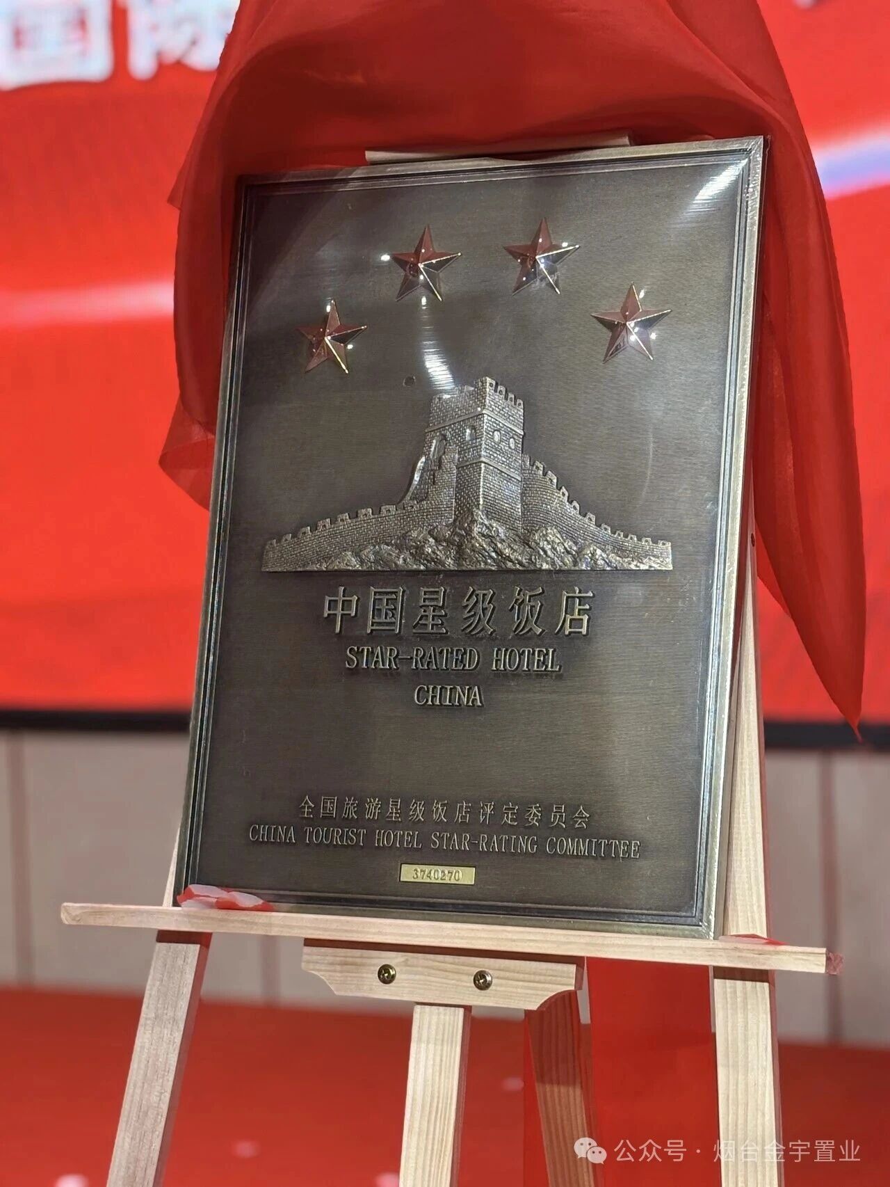 最激动人心的揭牌仪式将现场气氛推向高潮。单平教授、周家伟会长、刘长庭董事长、李燕总经理四位领导共同上台,为盛唐国际大酒店四星级旅游饭店隆重揭牌。随着红绸缓缓落下,金属质感的四星级旅游饭店牌匾熠熠生辉,现场掌声雷动,经久不息,共同定格这一荣耀瞬间。